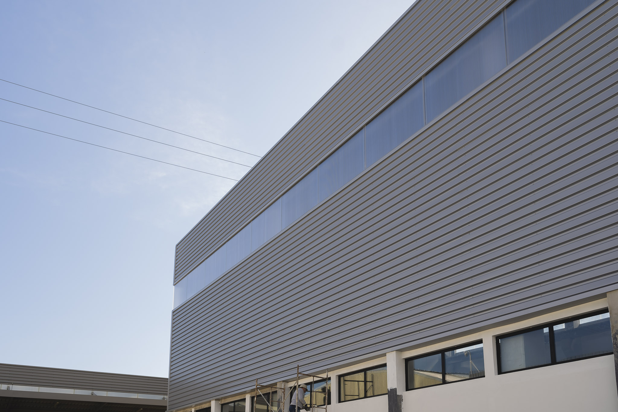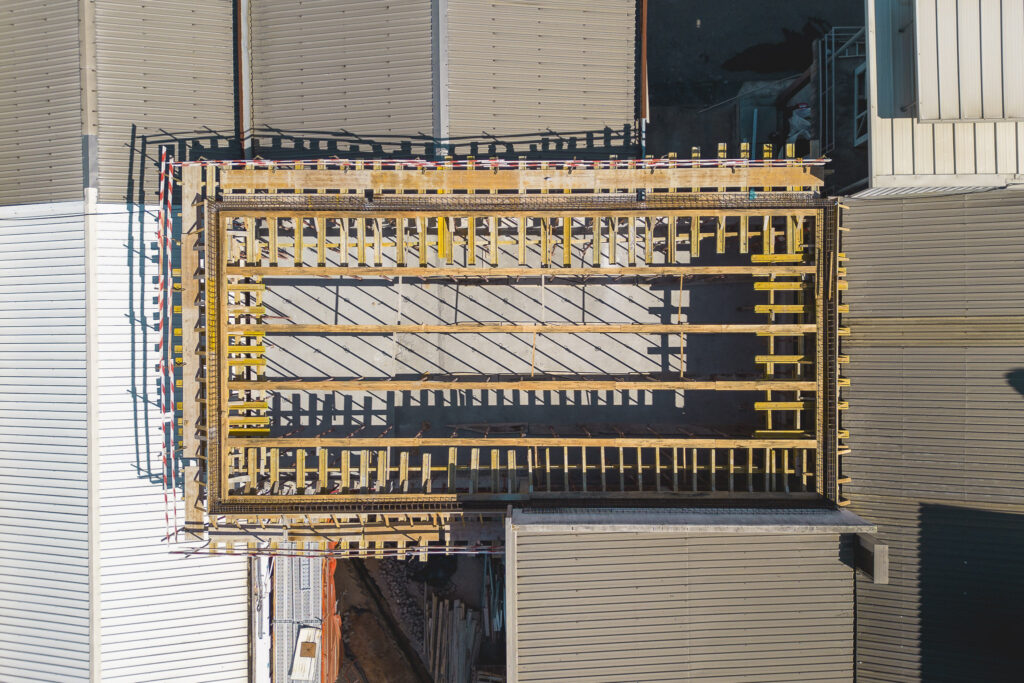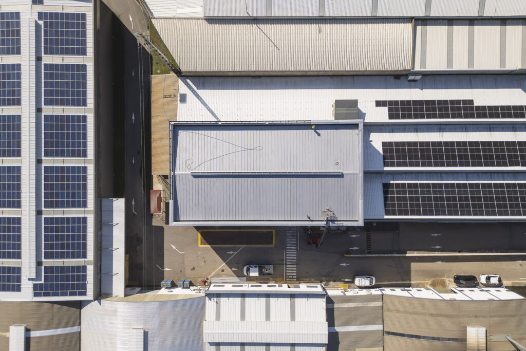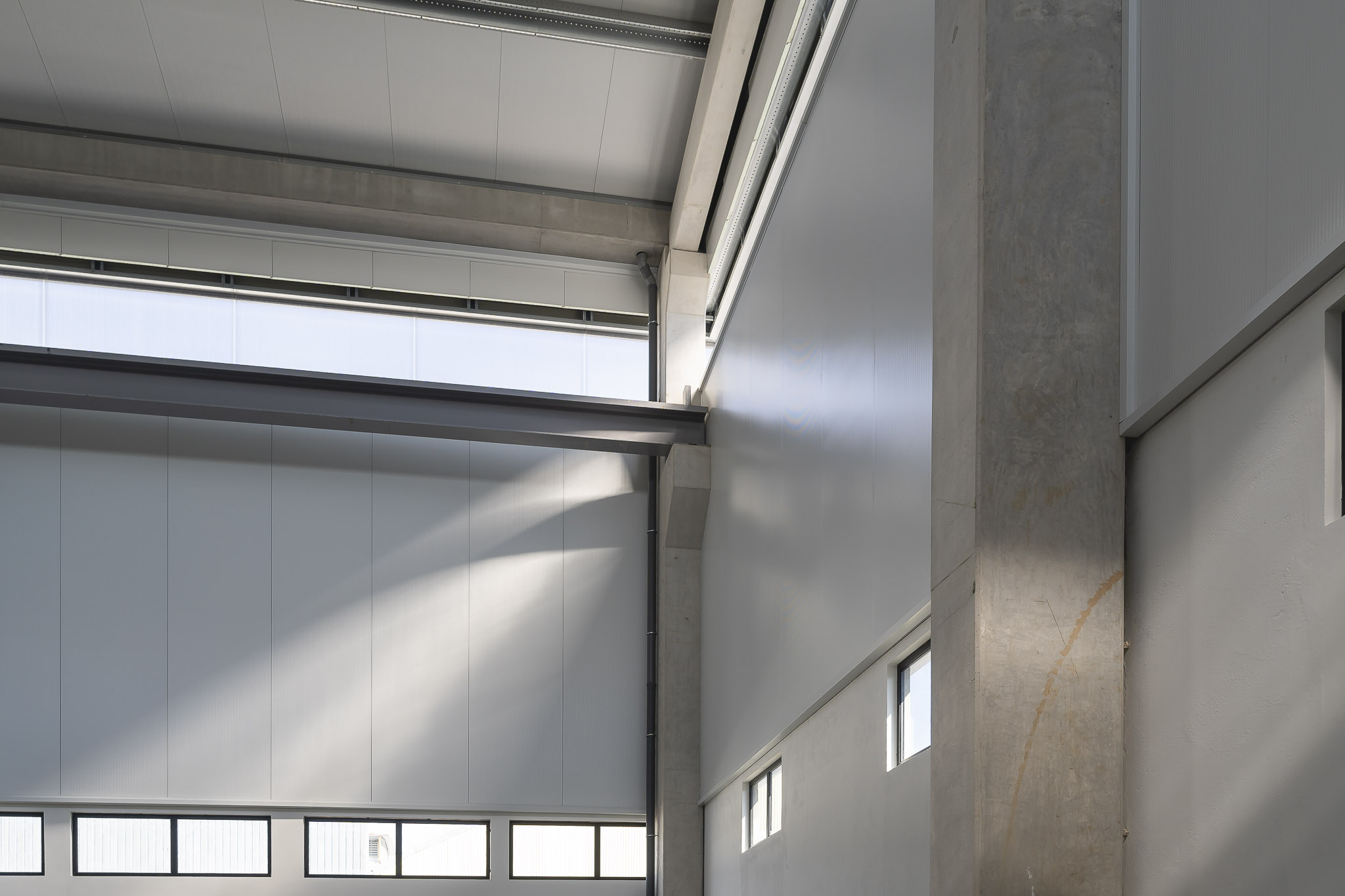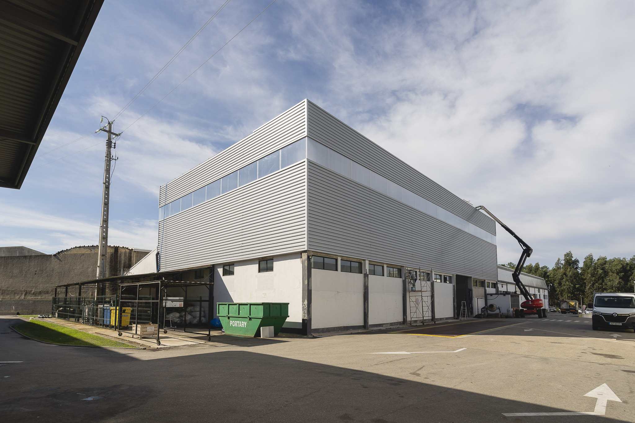 A intervenção consistiu na ampliação vertical de um pavilhão industrial, aumentando significativamente a altura útil da estrutura. Esta solução permitiu criar espaço para equipamentos de grande porte e otimizar processos produtivos, sem necessidade de expansão lateral.