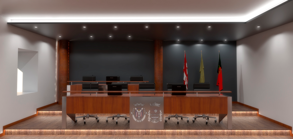 O edifício histórico recebeu uma renovação exterior, mantendo a sua traça tradicional, mas com uma imagem mais elegante e atual. No interior, criámos espaços funcionais e acolhedores, com destaque para a sala de assembleia, que agora conta com um design contemporâneo, iluminação eficiente e mobiliário ergonómico, garantindo conforto e profissionalismo.